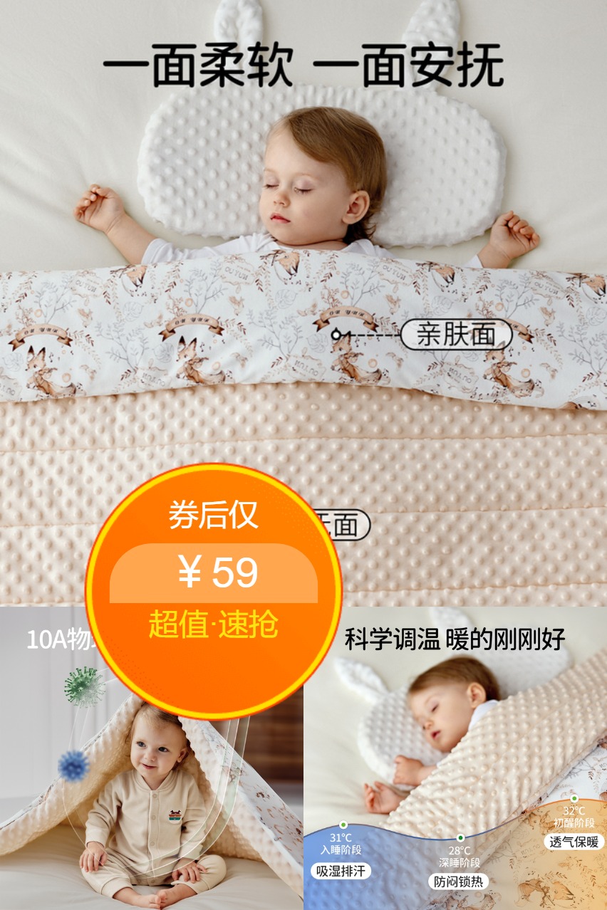 1、欧孕豆豆毯,春秋必备! 蚕丝宝宝被子,舒适盖身上。 通用尺寸,幼儿园、家里都能用。 四季皆宜,给您温暖和安抚。