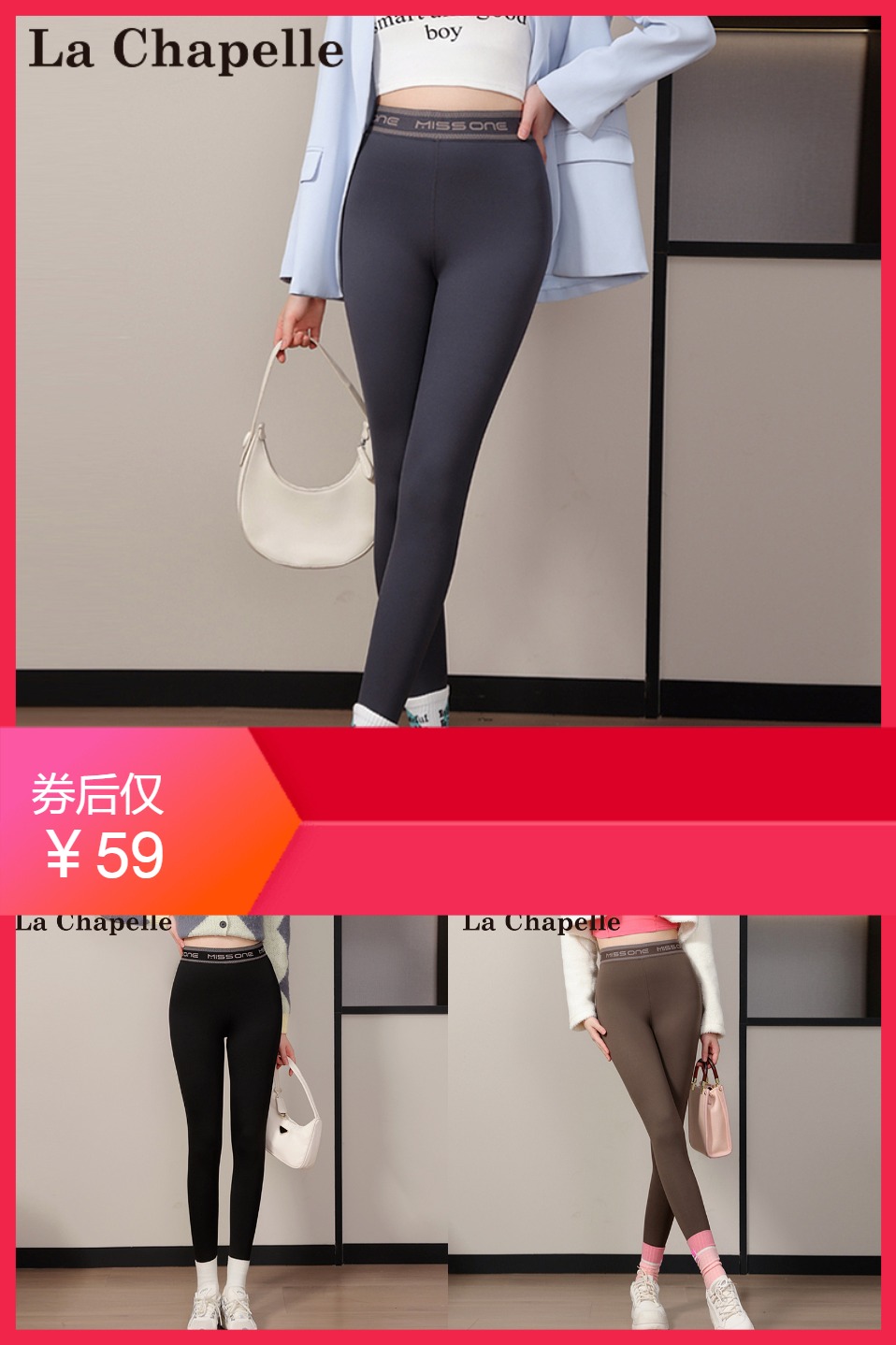 2、(拉夏贝尔商务旗舰店)拉夏贝尔秋冬高腰收腹修身显瘦加绒打底裤女瑜伽裤外穿提臀弹力裤
