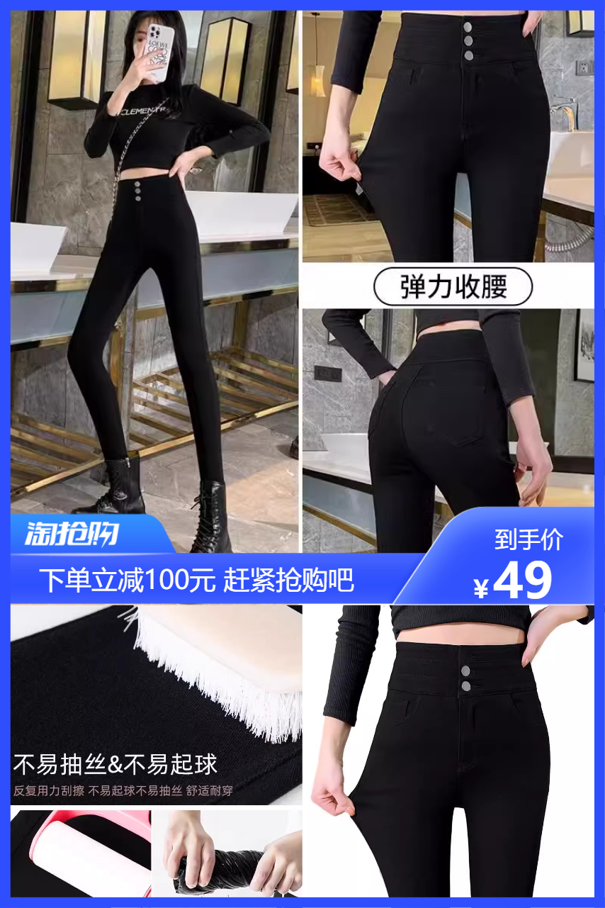 2、(黑觅旗舰店)春秋打底裤女外穿秋冬季小脚显瘦紧身弹力黑色铅笔高腰小黑魔术裤