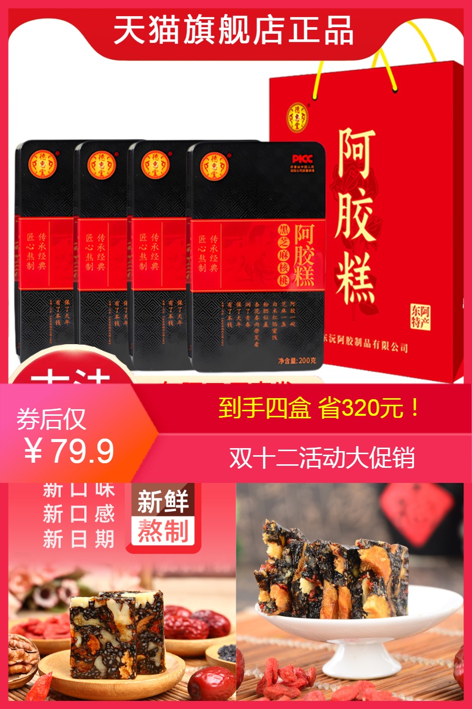 2、(德惠堂滋补养生旗舰店)精品铁盒200g*4盒 手提袋1个山东东阿黑芝麻核桃阿胶糕开袋即食
