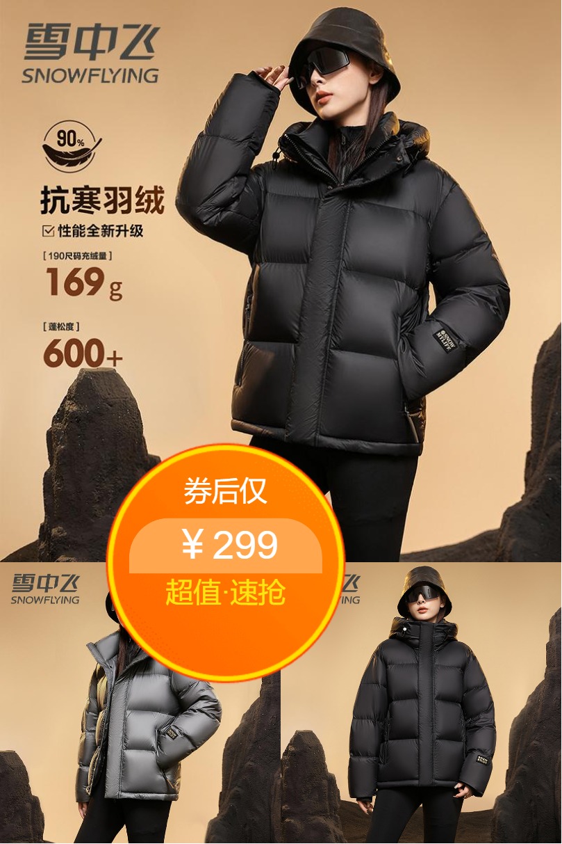1、【雪中飞】羽绒服女款冬季2024新款短款 券后仅需299 冬季保暖 只需一件 黄金比例利落显高 酷黑全新升级/3.0 速抢