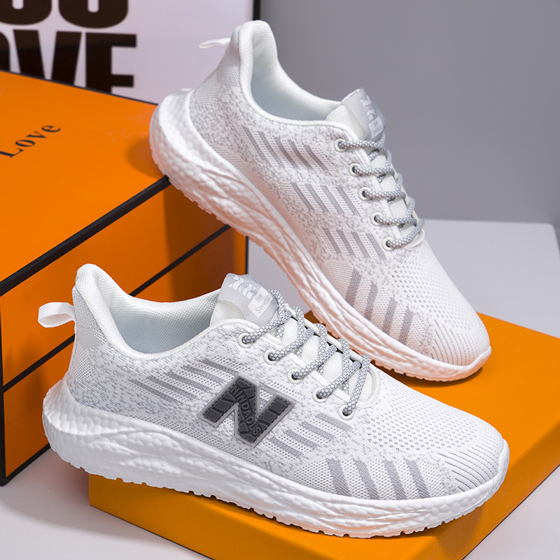 新款飞织网布透气跑步鞋软底轻便潮流百搭运动休闲鞋男时尚情侣鞋
