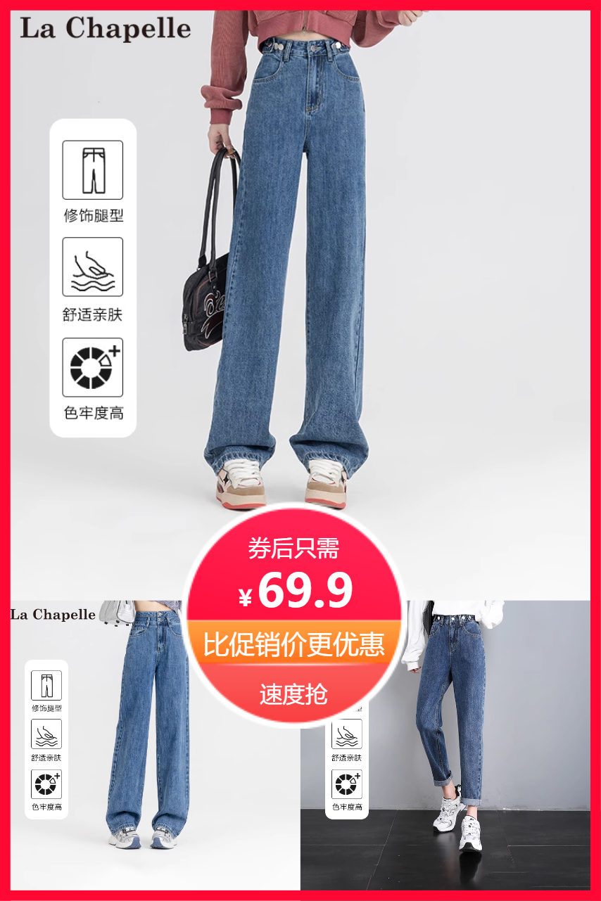 1、拉夏贝尔高腰阔腿牛仔裤 劵后仅需要69.9 高腰设计 + 宽松版型 + 阔腿牛仔 小个子福音,直筒显瘦 时尚百搭,关键2024年潮流款 速抢