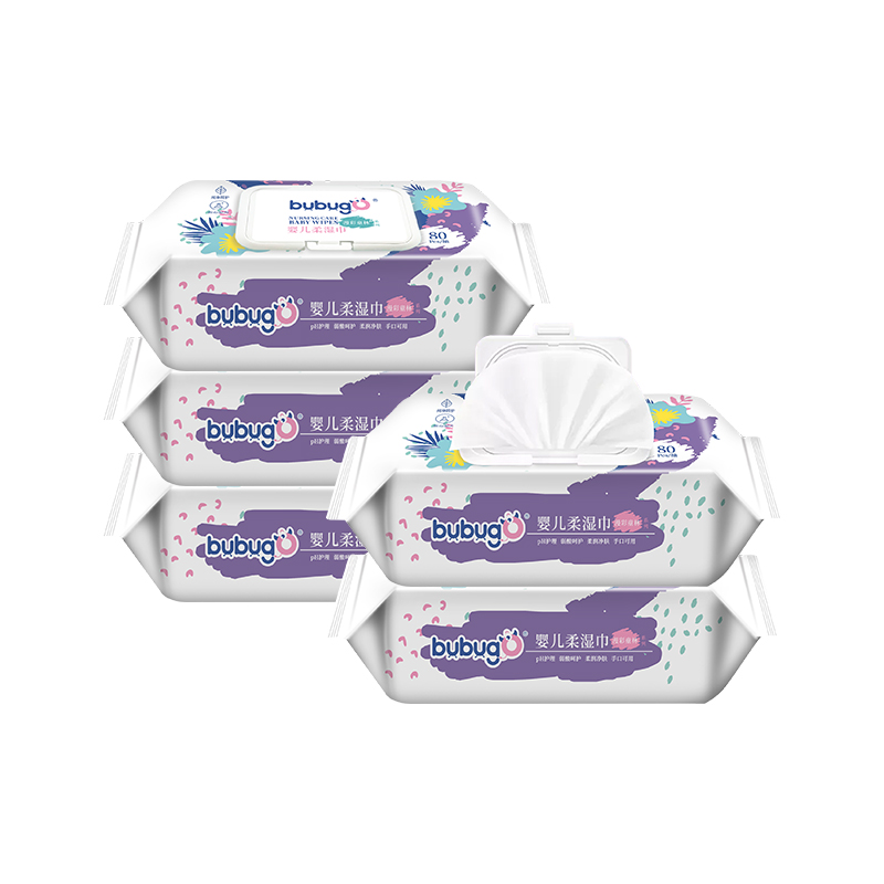 2、(bubugo旗舰店)bubugo湿巾婴儿手口专用新生儿大包装特价家用袋装80抽5包装带盖
