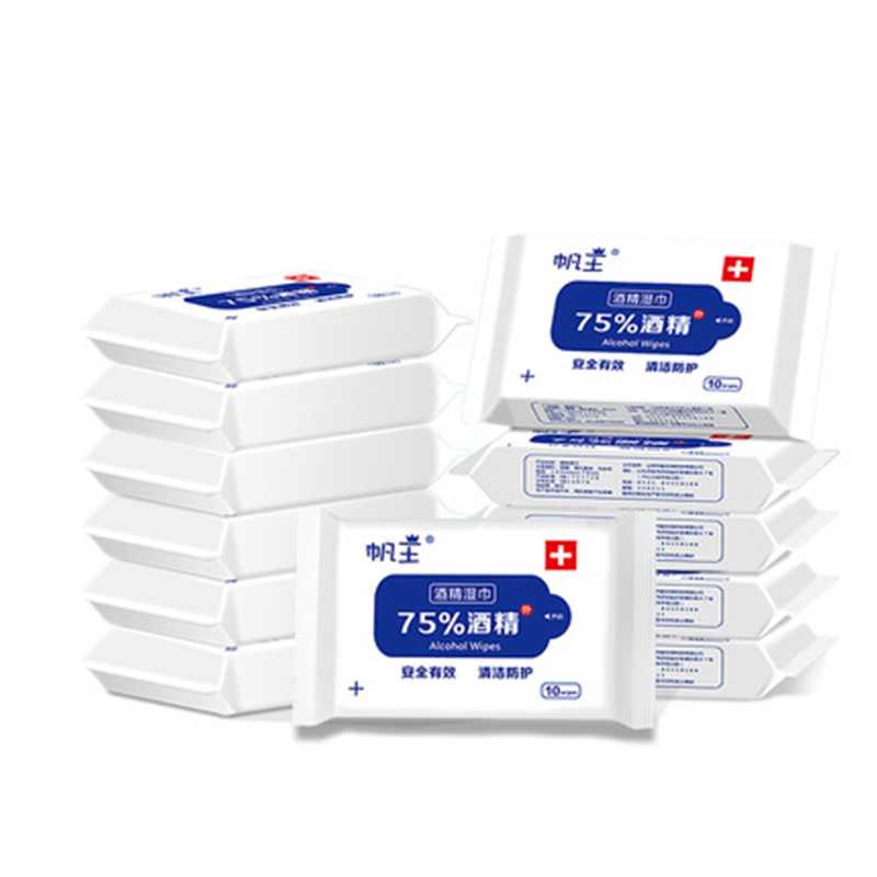 2、(洺豪母婴专营店)帆王75%度酒精消毒湿巾便携式除菌卫生擦手湿纸巾随身装10抽20包