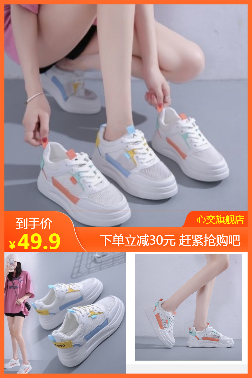 2、(心奕旗舰店)2022新款女鞋厚底小白鞋女板鞋网面透气鞋子夏网面鞋