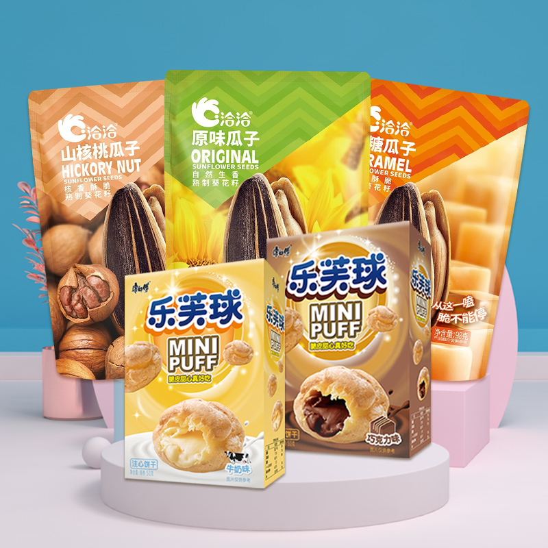 洽洽瓜子原味98g炒货零食康师傅乐芙球巧克力味夹心丸子休闲食品
