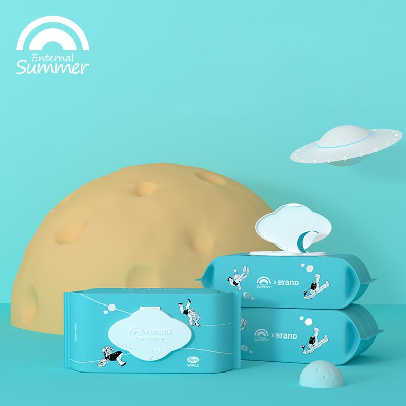 2、(盛夏光年母婴旗舰店)盛夏光年回忆星球柔湿巾手口通用宝宝新生婴儿带盖湿纸巾80抽*3包