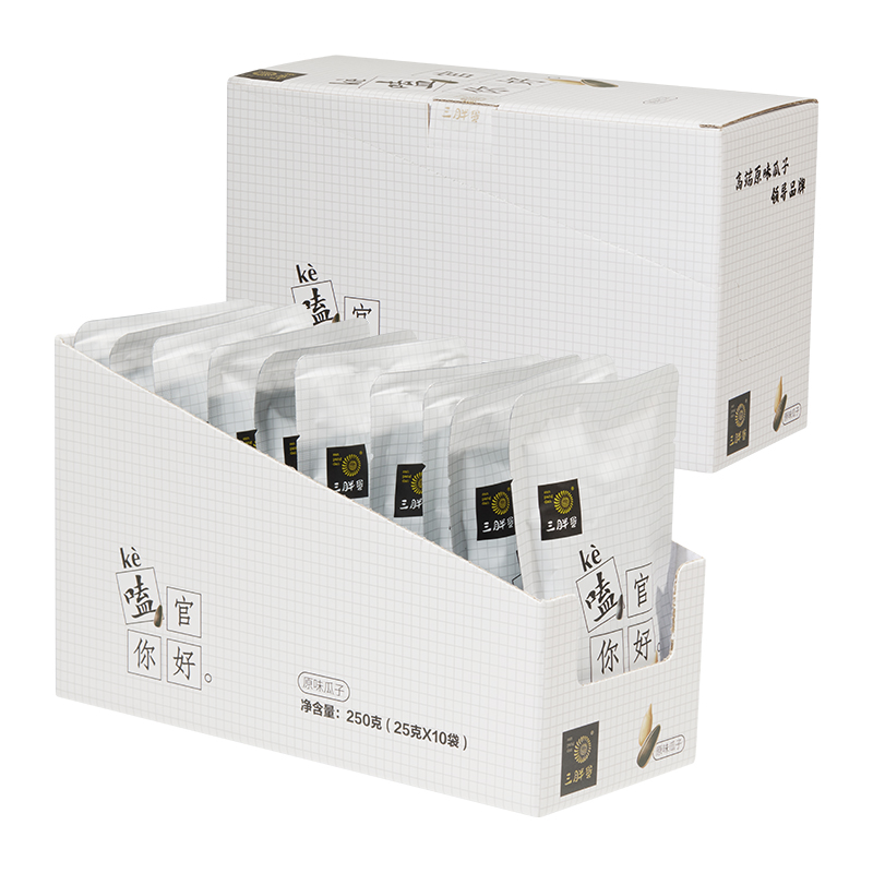 2、(天猫超市)三胖蛋休闲食品坚果炒货嗑官你好原味大瓜子25g*10小袋分享装零食