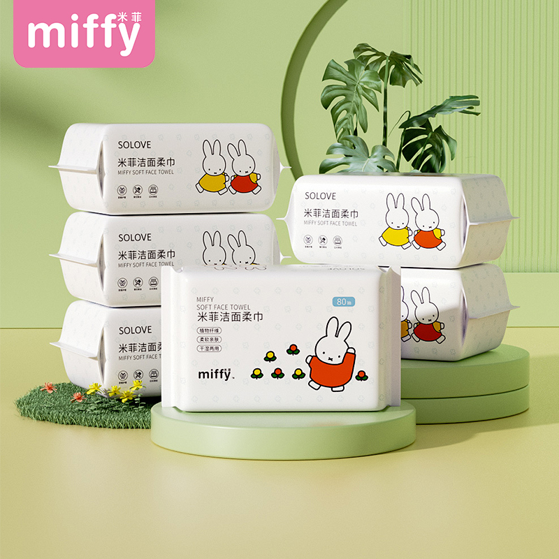 2、(solove母婴旗舰店)Solove米菲加厚干湿两用婴儿平纹绵软棉柔巾植物擦脸洁面巾80抽*6