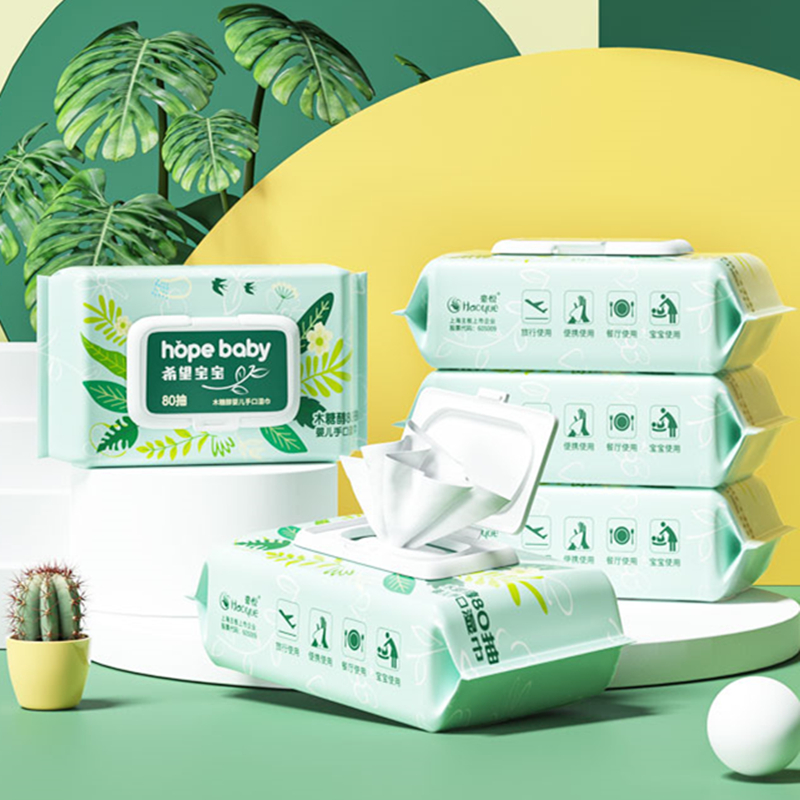 2、(希望宝宝旗舰店)希望宝宝湿巾婴儿手口专用80抽*5包木糖醇湿巾宝宝孕妇专用湿纸巾