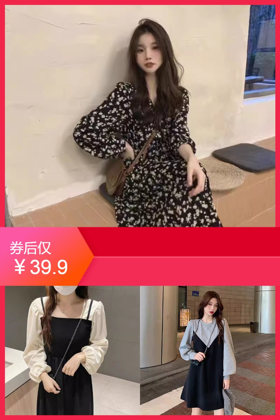 2、(短腿喵衣橱)大促秒杀】A2秋冬新款长袖连衣裙收腰甜美温柔风气质法式长裙