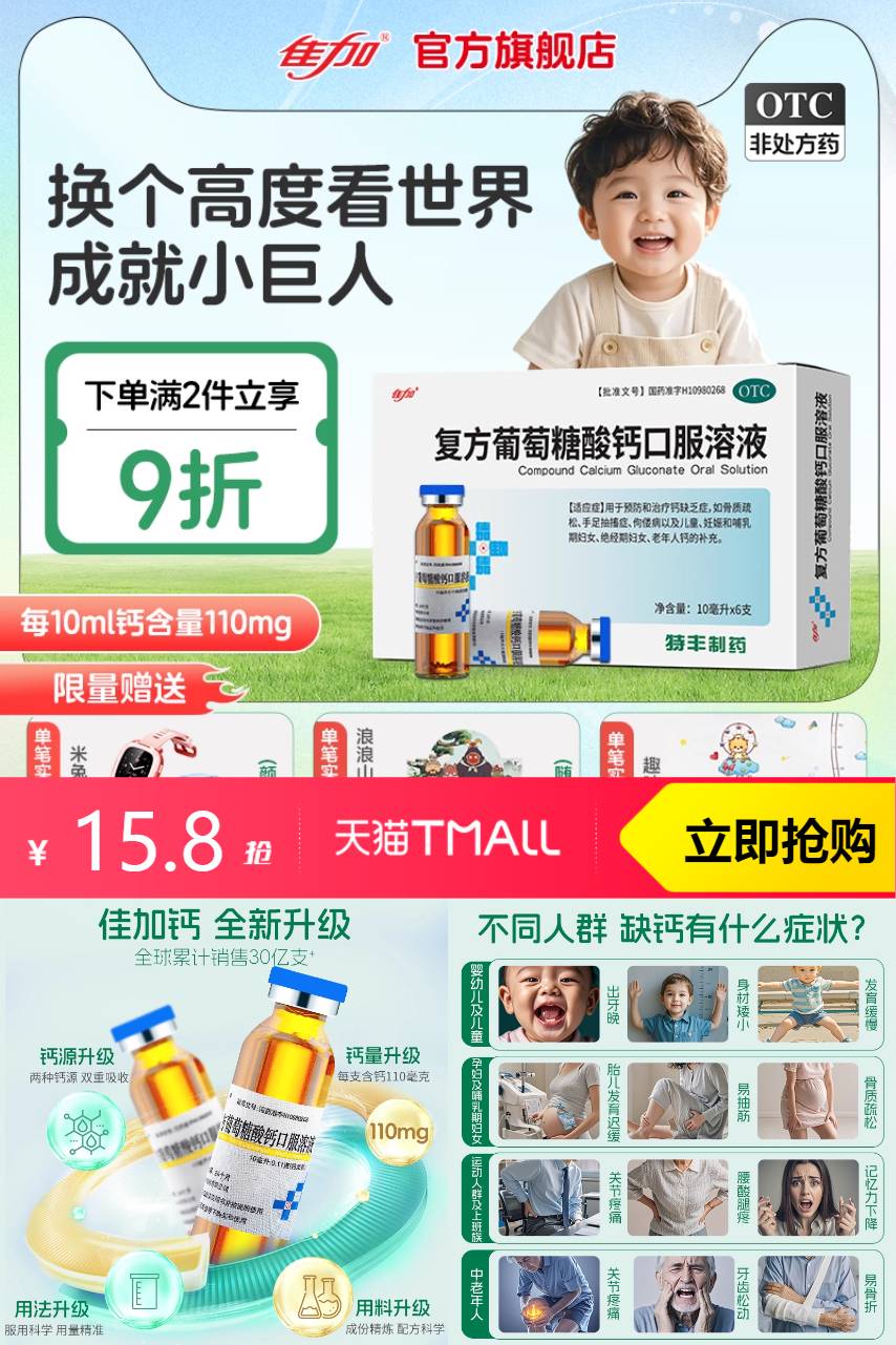 1、【佳加】复方葡萄糖酸钙口服溶液 全年龄段、高效补钙 双钙同补,无糖钙、服用更安心!