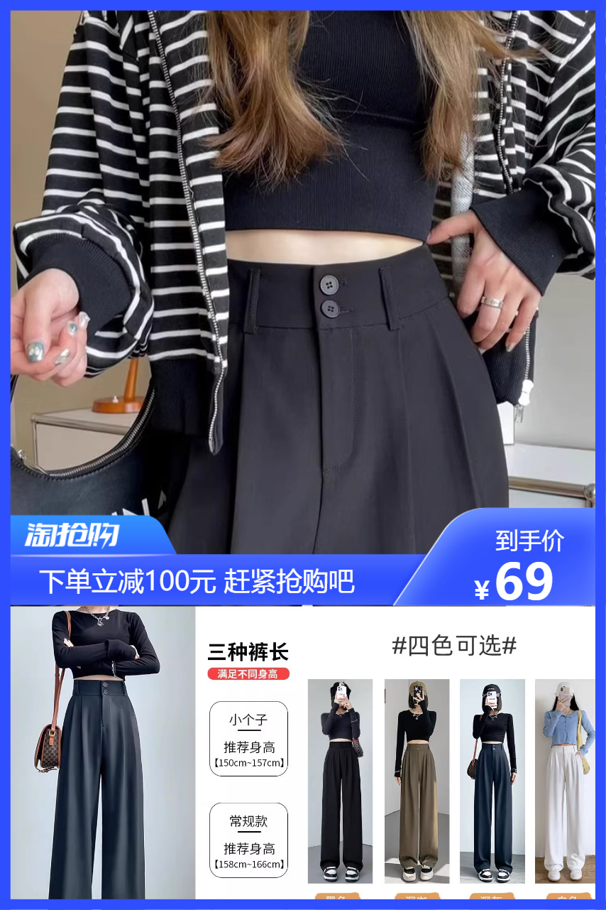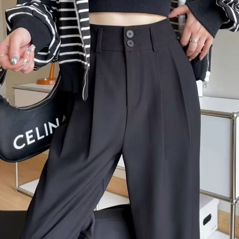 2、(黑觅旗舰店)西装裤女裤子春秋款2024新款垂感直筒西裤高级感小个子黑色阔腿裤