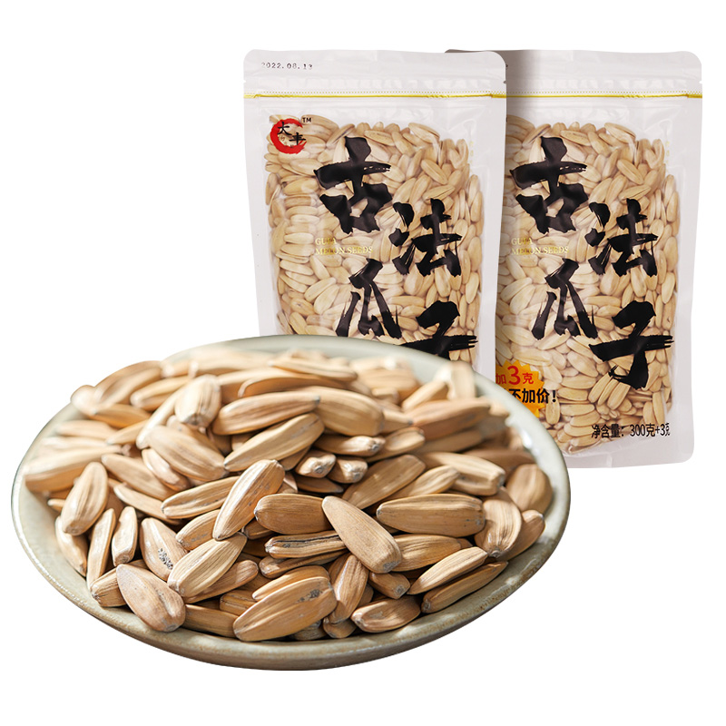 2、(物喜大丰旗舰店)物喜大丰古法瓜子303g袋装去皮不脏手大颗粒打手葵花子食品白皮