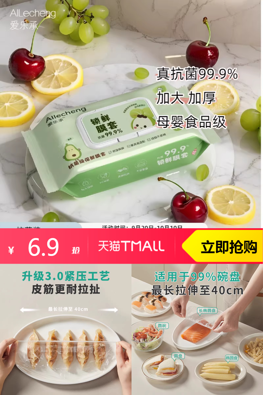 2、(爱乐承旗舰店)爱乐承家用食品级抗菌保鲜膜罩厨房剩饭碗碟保鲜膜母婴级保鲜膜套