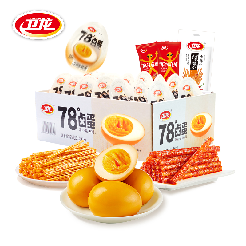 1、卫龙爆款78度卤蛋,款款经典,超人气超实惠;谷饲喂养,农场直供,无抗无药残无激素,含14%优质蛋白;约3小时卤制,蛋黄更入味;独立包装,出门上班追剧的零食必备!