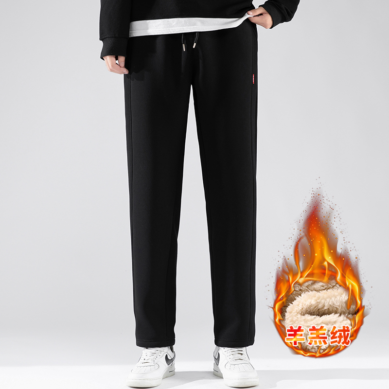 冬季男士加绒加厚休闲长裤2022新款宽松羊羔绒棉裤时尚运动直筒裤