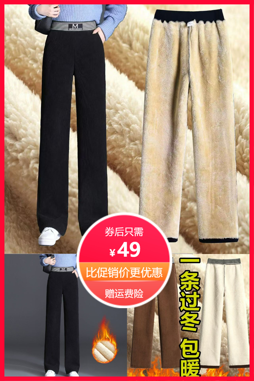 2、(都市针织企业店)加绒加厚灯芯绒高腰阔腿裤子女2024秋冬新款宽松显瘦垂坠感直筒裤