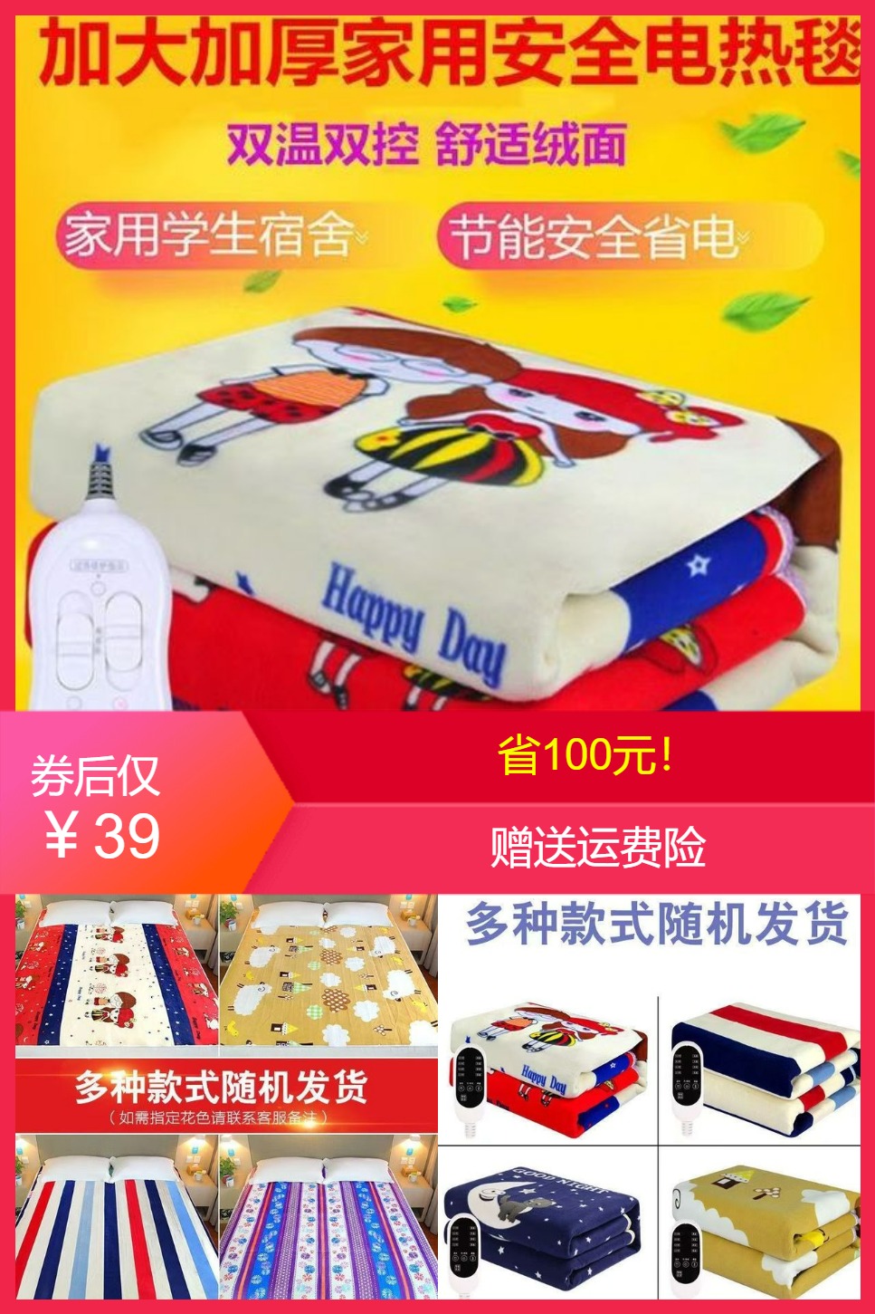 电热毯单人双人双控调温家用加大安全防漏电辐射无学生宿舍电褥子
