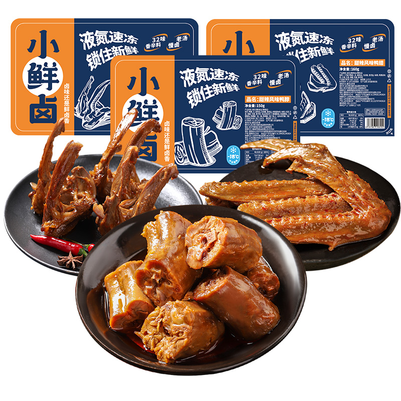 2、(小鲜卤旗舰店)【冷冻锁鲜装】小鲜卤甜辣鸭脖鸭锁骨冷冻锁鲜食品卤味甜辣鸭翅