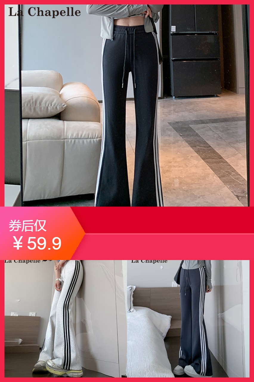 1、拉夏贝尔微喇运动裤女 券后价仅59.9元 好版型梨形身材也显瘦 修饰腿型实力遮肉瘦腿效果强过美图