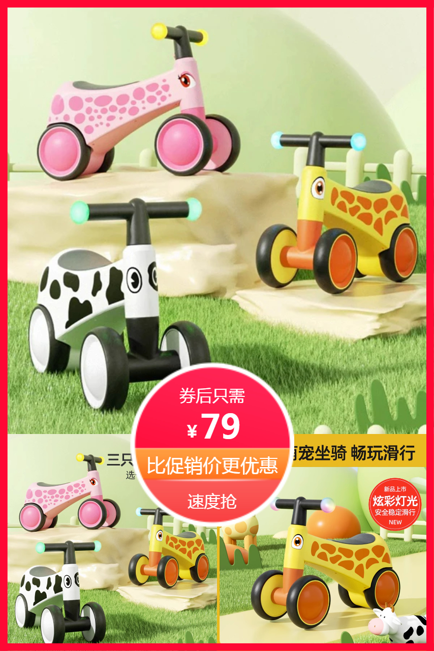 1、儿童滑步四轮平衡车 券后仅79 左右转弯均在安全区域 不易侧翻摔倒,优质的材质 速抢