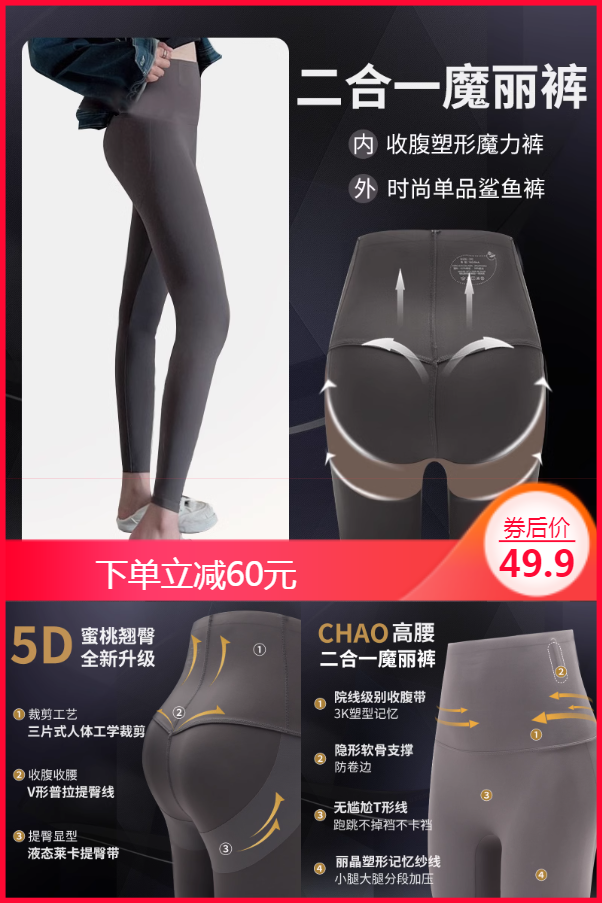 3、阪织屋秋冬鲨鱼裤,一件有塑形功能的时尚单品,收腹收腰,提臀显型,三片式人体工学裁剪,舒适有弹力,自由无阻。