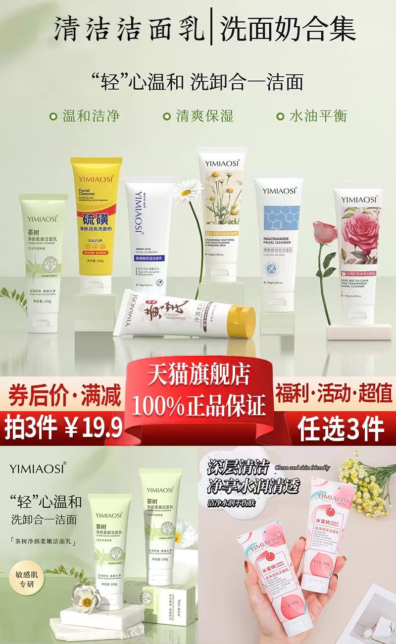 3、拍2件,第2件0元,任选2件,洗面奶,洁面乳,氨基酸,硫磺,栀子花,山茶花,壬二酸,维生素B5,牛油果,烟酰胺,积雪草,复活草,玫瑰,牛奶,水蜜桃,红石榴,19款任选,一次选够!
