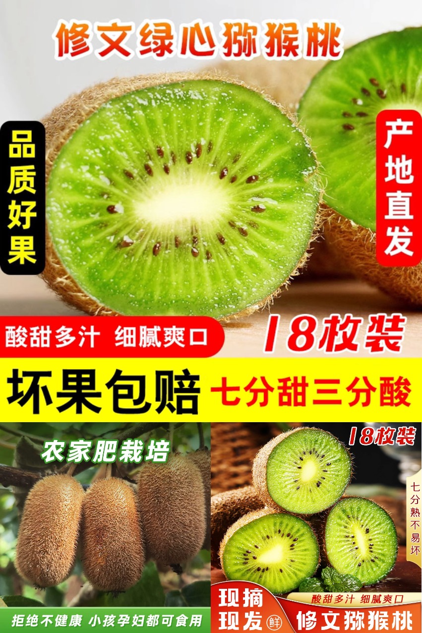 1、修文猕猴桃,鲜嫩多汁 国家地理标志认证 3分酸7分甜,清爽甜蜜 现摘现发,产地直供 14.9/箱,尝鲜必备!