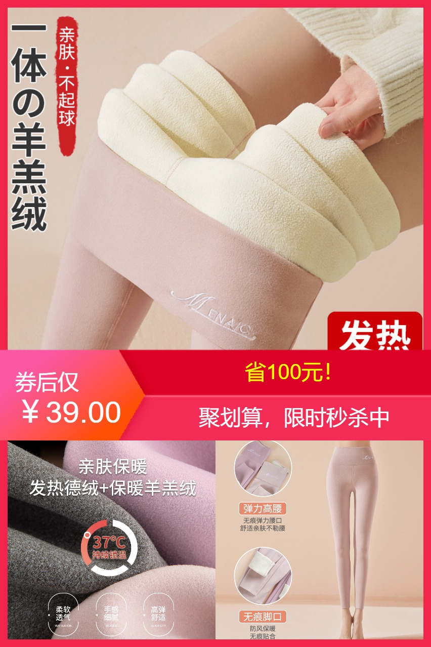2、(久香美旗舰店)2023新款秋冬高腰德绒羊羔绒加绒加厚阳离子发热大码保暖裤打底裤