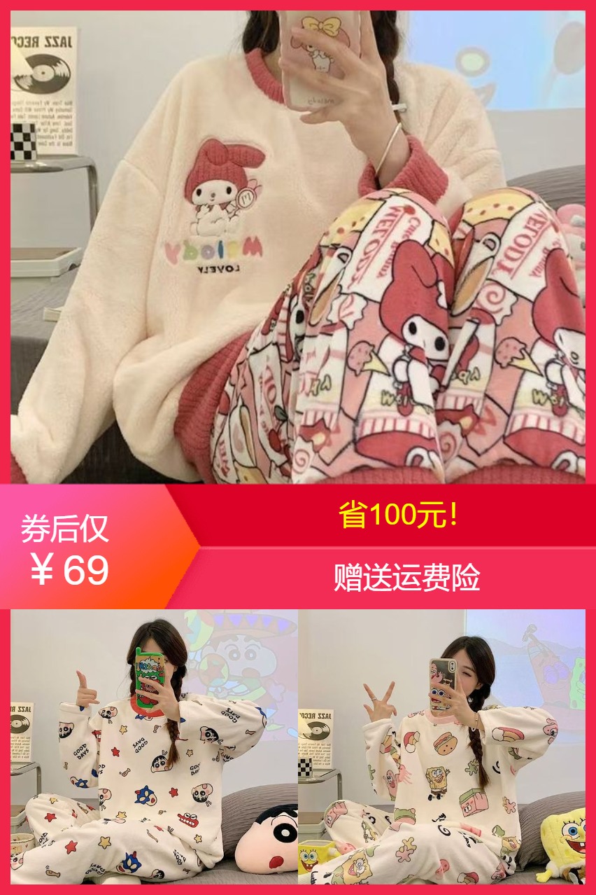 2、(guojingguozhi的小店78)睡衣女冬珊瑚绒韩版学生可爱长袖秋冬季加厚法兰绒大码家居服套装