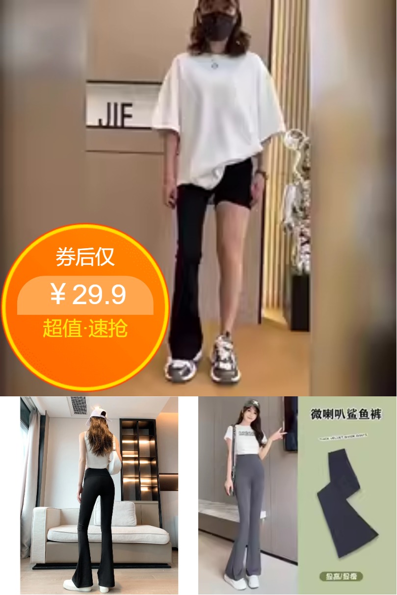 1、【露丝秋款】 微喇叭高腰阔腿鲨鱼裤 券后仅需29.9 遮肉显瘦包容度UP 3D立体裁剪修饰腿型 帮你打造腿精人设 速抢