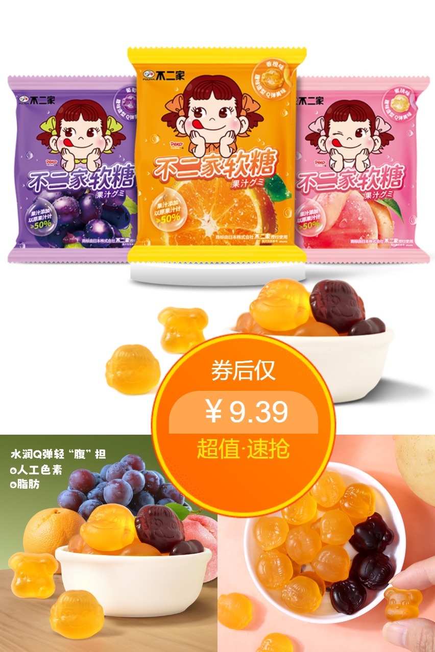 2、(亦泓食品专营店)临期!不二家果汁软糖水果味儿童休闲小零食幼儿园学生礼物橡皮糖