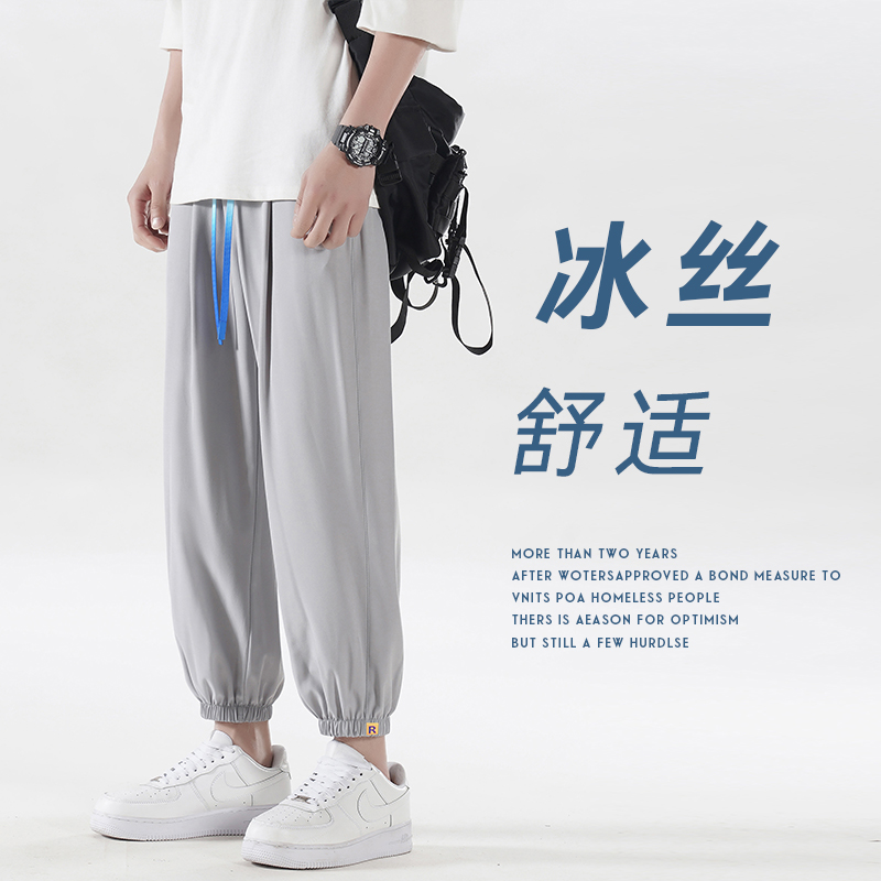 2、(SXRT旗舰店)冰丝薄款九分裤束脚空调裤速干运动裤夏季百搭宽松阔腿休闲裤弹力
