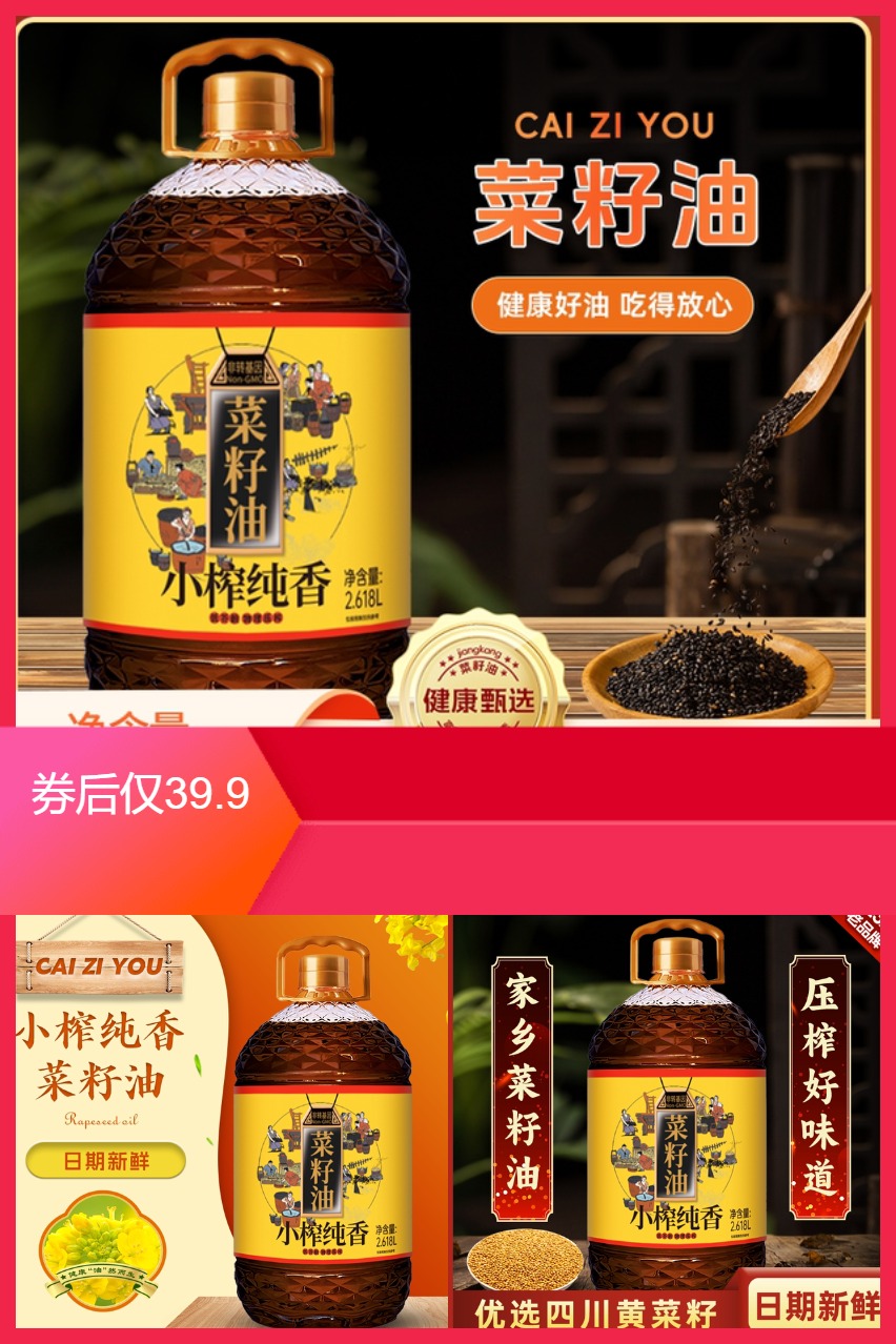 3、券后叠加老客红包到手34.9元抢5.24斤纯菜籽油!工厂直供,香到上头! 物理压榨锁足菜籽香,炒菜飘满屋,吃的就是老味道!非转基因,配料只有纯菜籽油,不掺混合油,老人孩子都放心!2.618L大容量,家用超划算,现在下单直接抱回家!