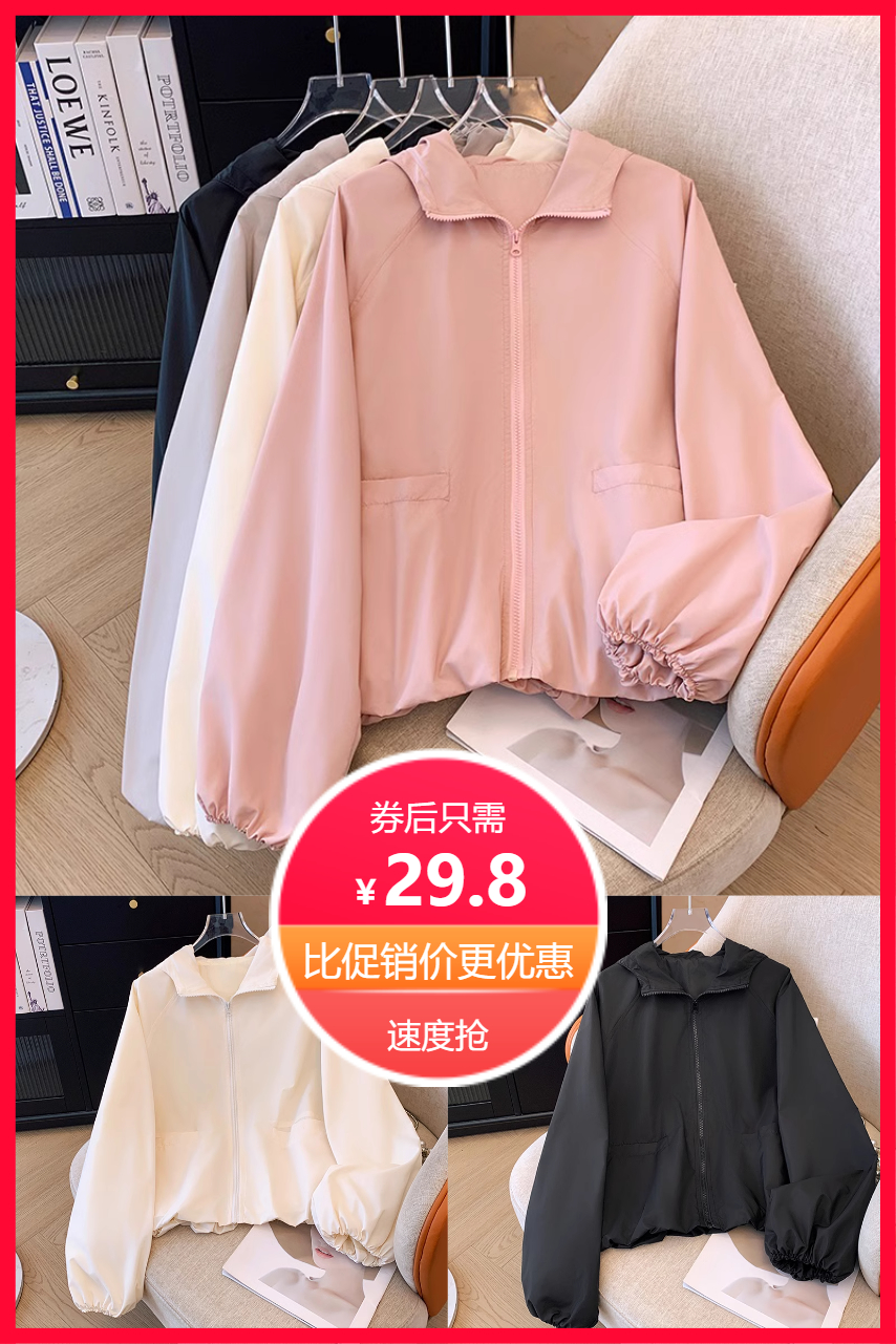 1、遮肉又显瘦!宽松纯色休闲款, 宽松连帽,拉链防晒衣, 精细透气,神仙组合, 仅需29.8 速抢