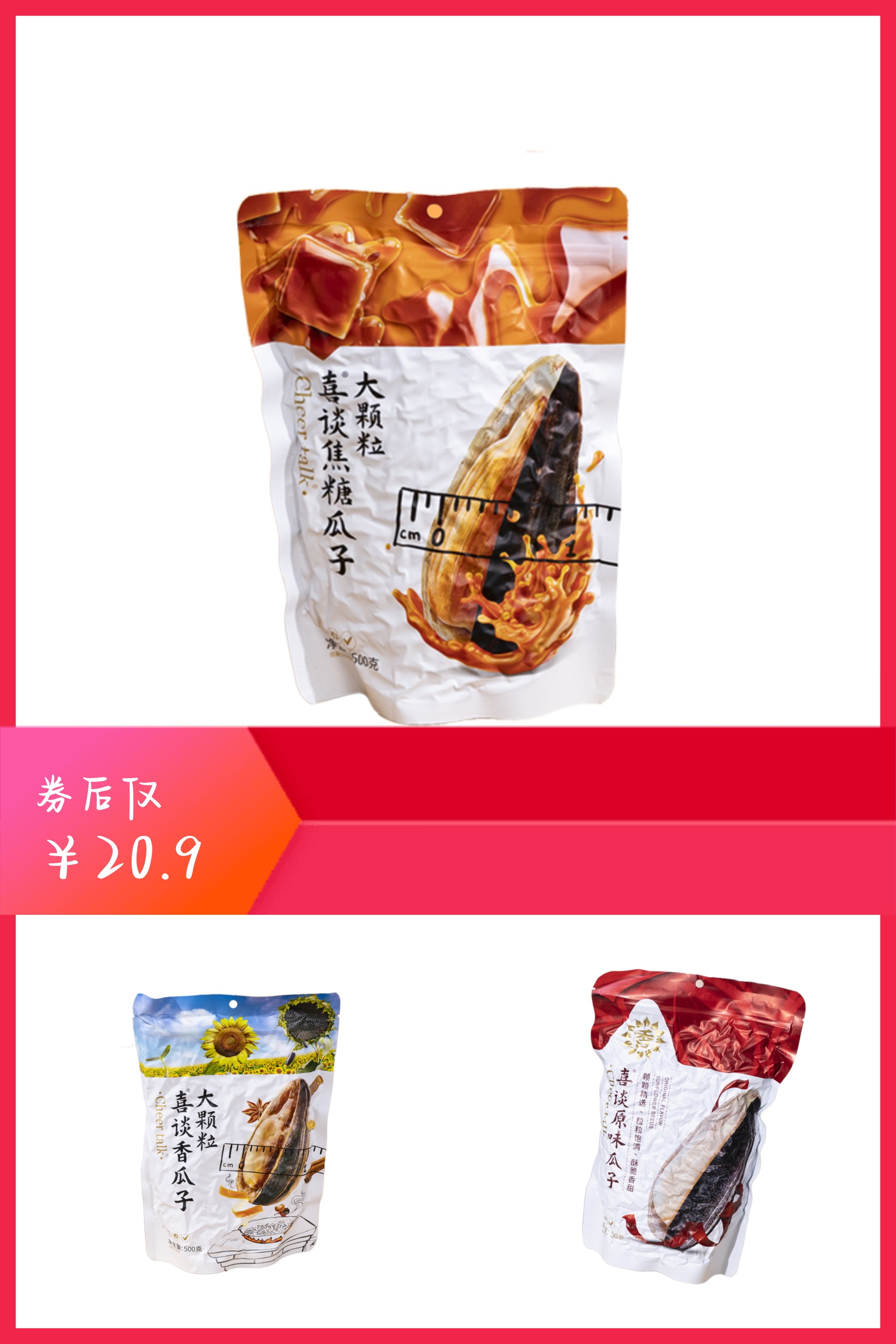 2、(喜谈旗舰店)喜谈瓜子山核桃味零食小包装休闲零食坚果炒货500g/包