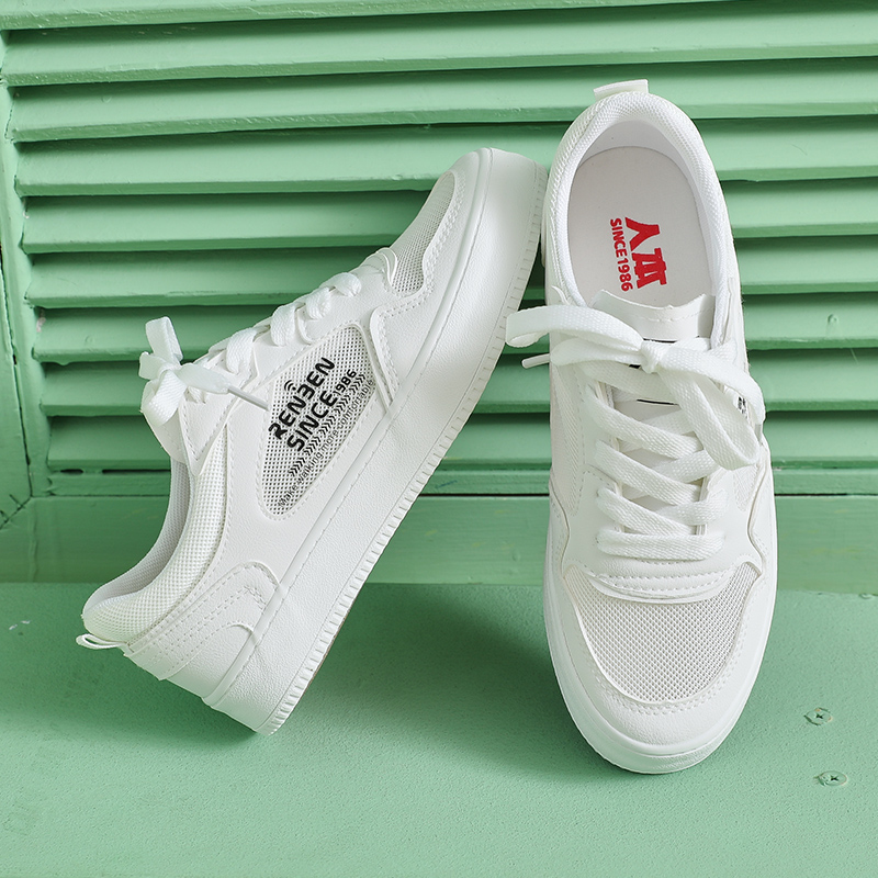 2、(爱尚心鞋鞋类专营店)人本皮面小白鞋女薄款2021夏季透气百搭基础平底学生网眼镂空女鞋