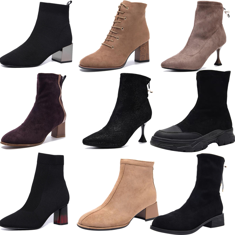 依思q简约优雅气质百搭短靴女时尚尖头细跟高跟鞋短筒靴子女