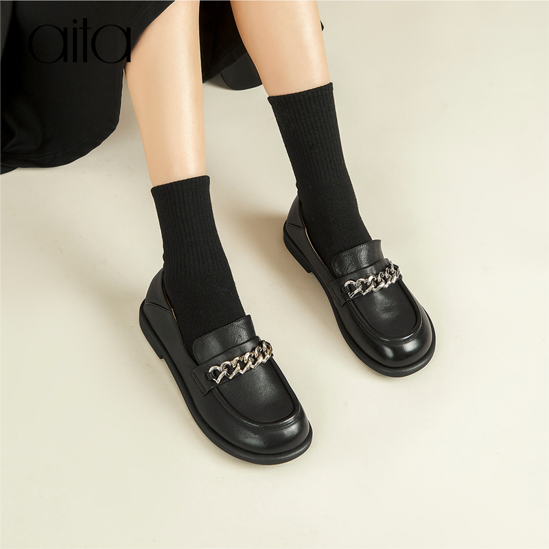 2、(aita艾塔旗舰店)AITA真皮羊皮乐福鞋女软底2022年新款春JK复古学院风小皮鞋英伦风