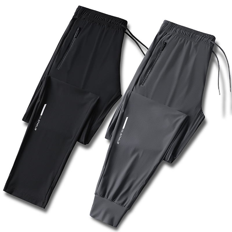夏款大码冰丝裤男裤加大运动裤大码休闲透气超薄速干垂感束脚长裤