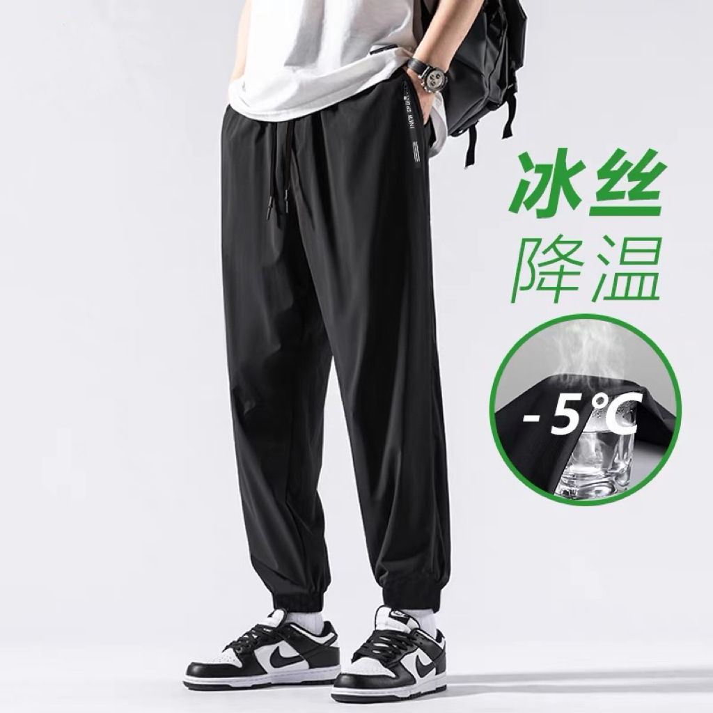 冰丝裤子男士夏季凉爽透气空调裤速干运动裤休闲九分裤宽松哈伦裤