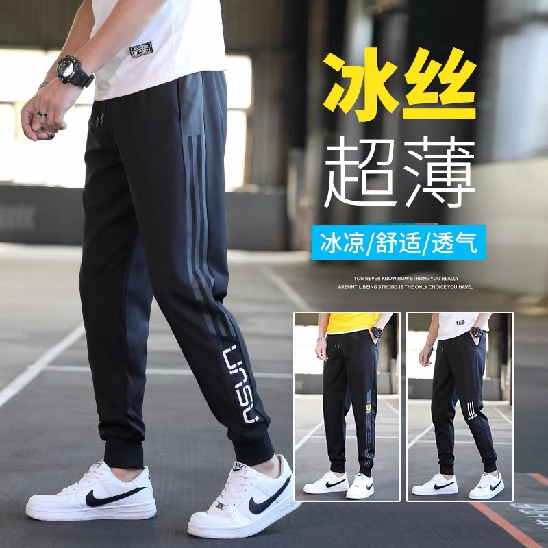 港风运动裤男士束脚卫裤2022年新款夏季薄款冰丝裤子潮牌休闲长裤