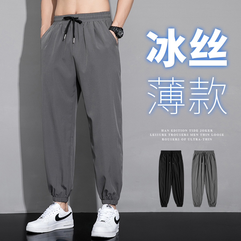 冰丝裤子男夏季薄款休闲长裤男士工装宽松束脚卫裤速干九分运动裤