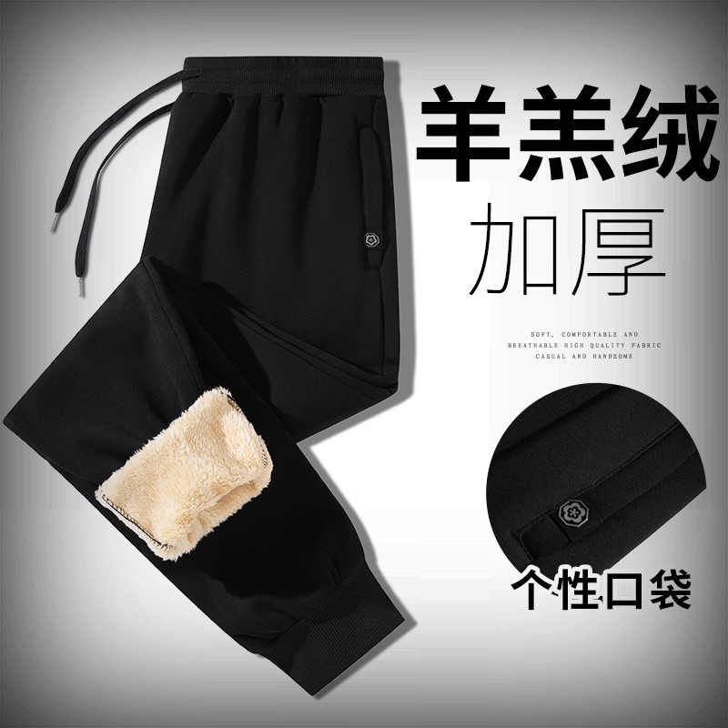 2、(帛耐卡旗舰店)冬季新款羊羔绒休闲裤子男士加绒加厚卫裤运动宽松束脚长裤