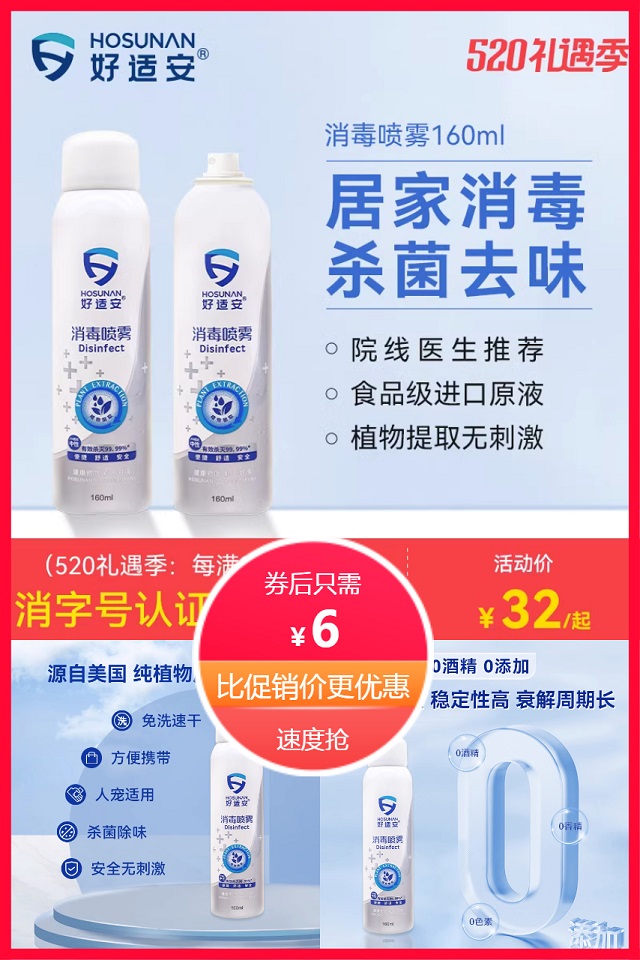 3、【推荐理由】:上海世博会指定消毒产品。【好适安】天然植物茶树油提取,0酒精,0添加,成分安全稳定性高,衰解周期长,长效灭菌72小时,接近人体细胞,皮肤接触温和无刺激性,环保可降解,出门携带方便,【退货运费险】