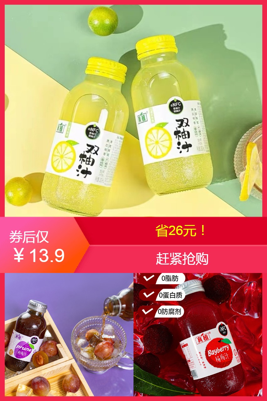 3、真植双柚汁玻璃瓶装✨ [\u1f4b0]13.9/箱,整箱6瓶 [\u1f33f]进口香柚+常山胡柚,双重美味~ [\u1f379]夏日解渴,健康好滋味!