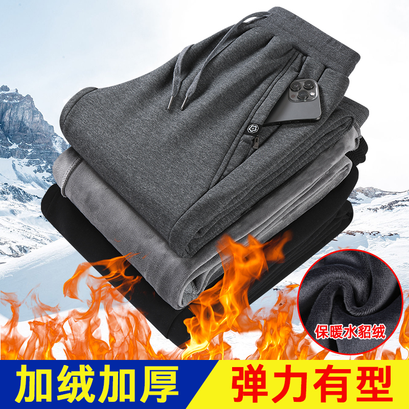 400克M-8XL纯棉大码秋冬季男士休闲运动长裤超柔加绒加厚冬天束脚