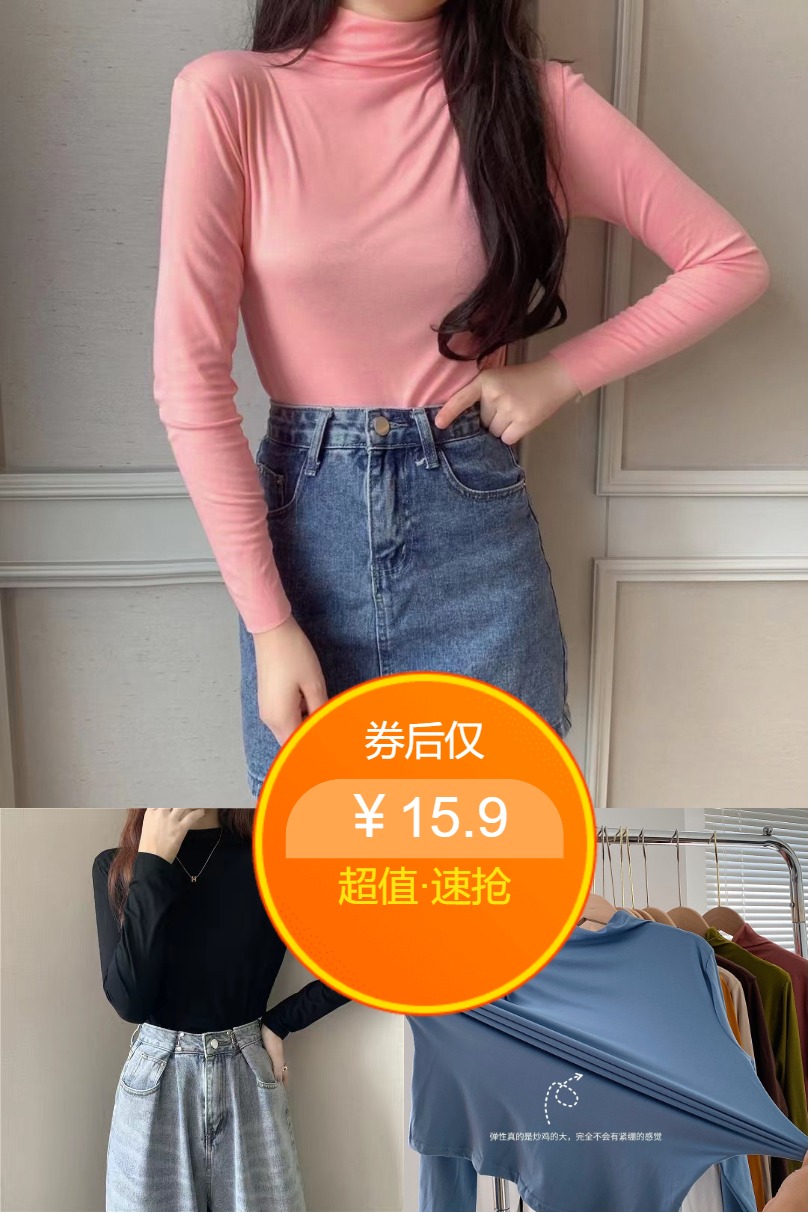 1、九色半高领打底衫女2024秋冬新款 券后仅需15.9 弹力面料不紧绷 柔软贴身舒适 穿上就不想脱 速抢